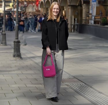 "Ich war skeptisch, ob 'Unikat' wirklich heißt, dass meine Tasche einzigartig ist – aber wow! Man sieht und spürt sofort, dass sie handgehäkelt ist. Jede Masche ein bisschen anders – und genau das macht meine Frisie so besonders. Ich liebe sie!"