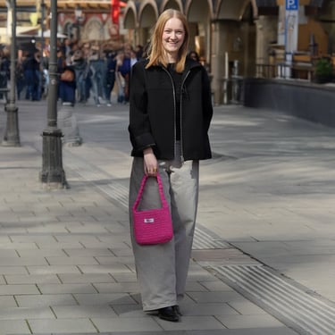 "Ich bin eigentlich eher schlicht unterwegs, aber meine Gärtnerplatz Glow Tasche hat mein Outfit sowas von aufgewertet! Ich hätte nie gedacht, dass so eine gehäkelte Tasche so edel wirken kann."