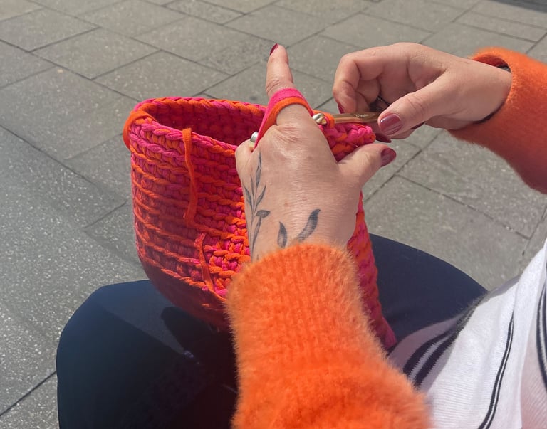 Handgehäkelte Taschen, inspiriert von den schönsten Ecken der Stadt – jede ein Unikat, mit ganz viel Herz gemacht.